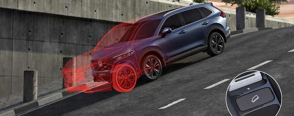 La CR-V Advanced Hybrid cuenta con un novedoso sistema de asistencia para control de descenso en pendientes (HDC). Una vez activado, mantiene el vehículo a una velocidad constante de descenso sin necesidad de acelerar y/o frenar para que el conductor se concentre únicamente en direccionar el vehículo.