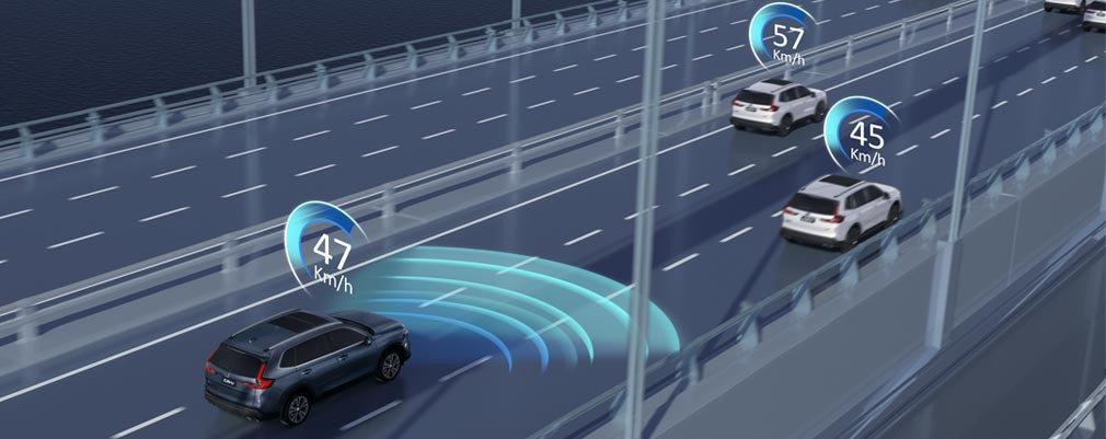 Está compuesto por una cámara y un radar que trabaja en conjunto con sensores que realizan una lectura permanente de las situaciones y las condiciones del tráfico que brindan las siguientes funciones: control de velocidad crucero adaptativo (ACC) con seguimiento a baja velocidad (LSF), un sistema que ayuda al conductor a mantener una distancia segura con el vehículo de adelante; sistema de frenado con mitigación de colisión (CMBS); sistema de asistencia para mantenerse en el carril (LKAS); sistema de mitigación de salida de carril (RDM); y sistema de luces altas automáticas (AHB). Honda Sensing está disponible en todas las versiones.