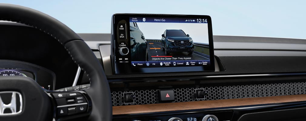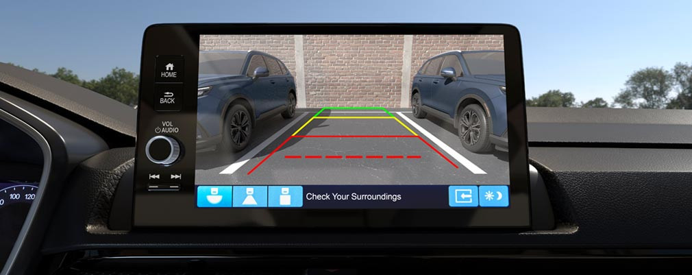 CR-V Advanced Hybrid cuenta con una cámara de visión trasera de 3 ángulos con guías dinámicas de dirección. Los diferentes puntos de visualización facilitan la conducción a la hora de maniobrar o estacionar en espacios limitados.